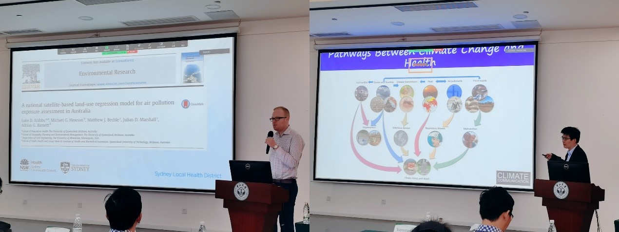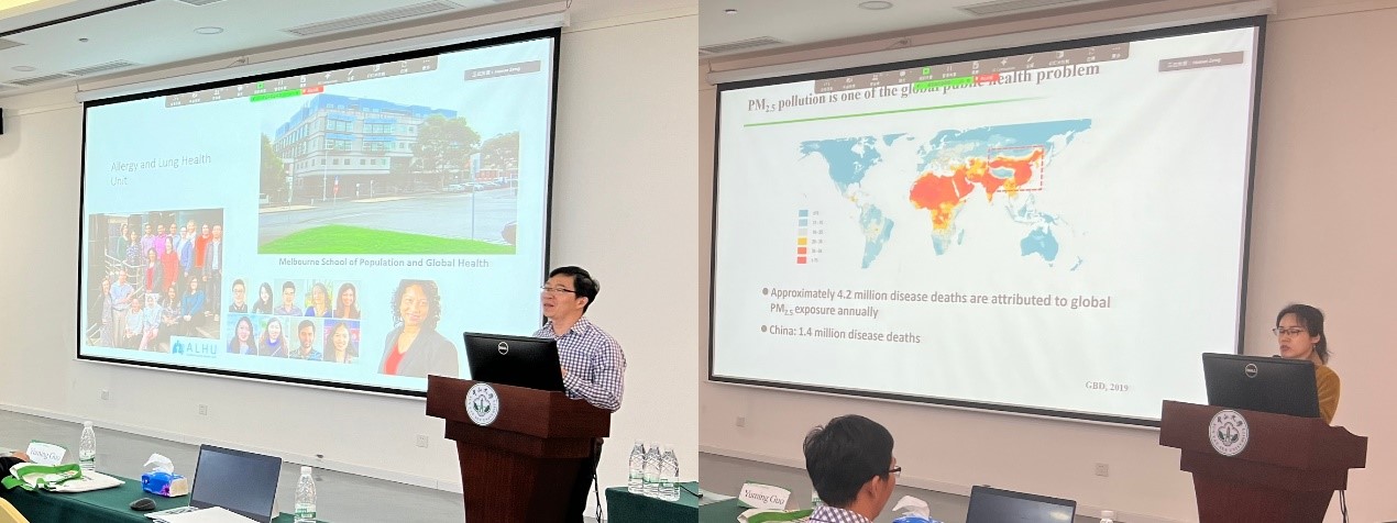 学术报告期间,悉尼大学的Luke Knibbs教授介绍了澳大利亚及其他地区的环境流行病学研究以及环境健康研究技术的新进展;莫纳什大学的郭玉明教授对全球极端天气、森林野火和空气污染对人群健康的影响进行了系统报告;墨尔本大学的Dinh Bui研究员以澳大利亚两个大型队列——“塔斯马尼亚健康队列”和“墨尔本过敏人群队列”为例,报告了空气污染对人群呼吸系统和过敏性疾病的影响;yl88858永利集团曾晓雯教授报告了大气污染健康损害的中国人群队列研究成果,重点介绍PM2.5及其内聚组分全氟化合物与人群健康的最新进展。