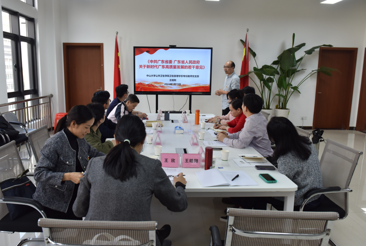 2024年1月19日下午,我院卫生管理学系专任教师党支部和广东省卫生健康委员会体制改革处党支部联合开展“医改文化与卫生健康高质量发展”主题党日活动。学院党委副书记王燕芳应邀参会,卫生管理学系专任教师党支部和广东省卫生健康委员会体制改革处党支部党员同志出席,活动由卫生管理学系专任教师党支部书记黄奕祥教授和广东省卫生健康委员会体制改革处党支部委员马聪副处长共同主持。
