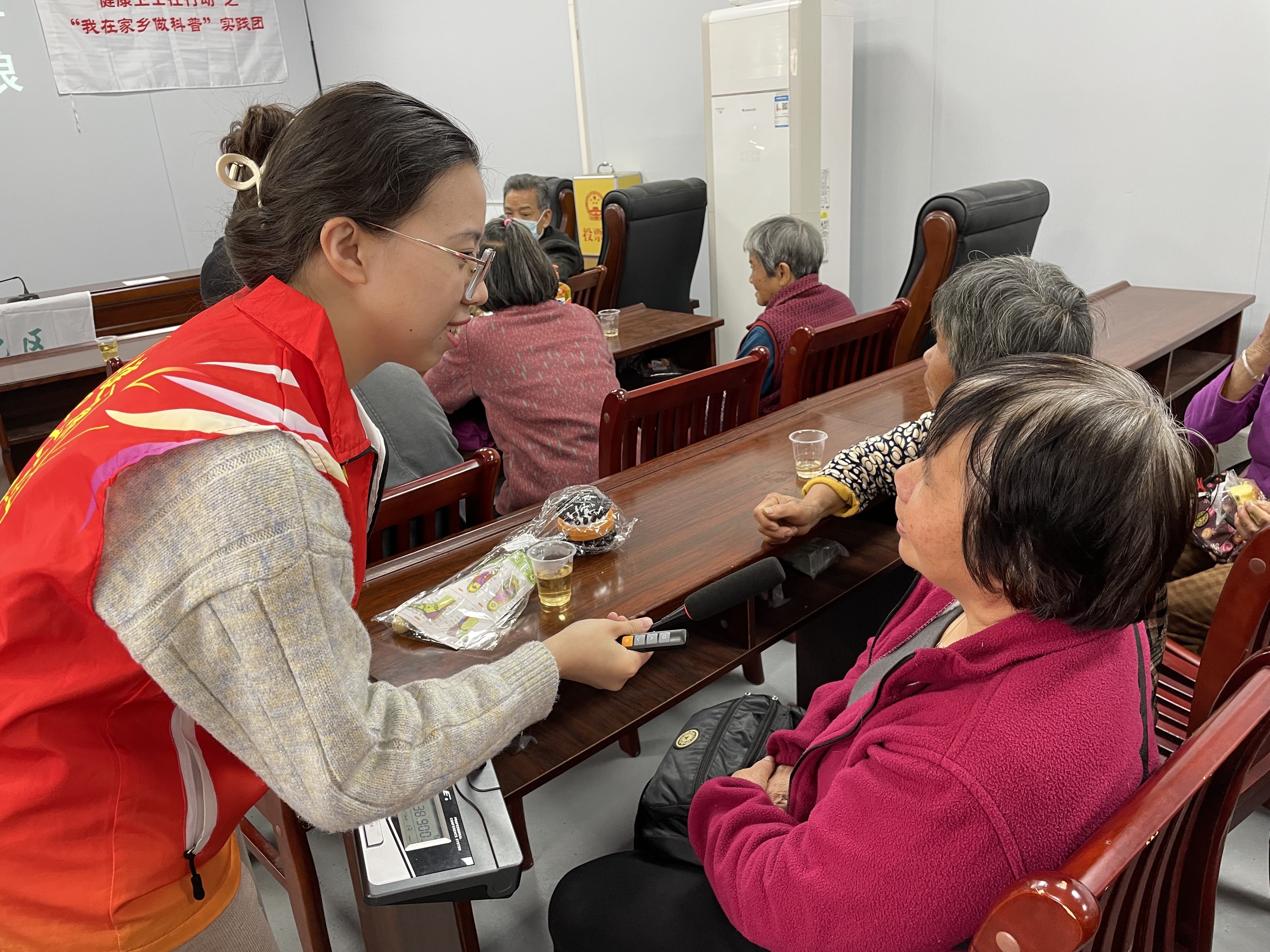 在讲座结束后,突击队成员随机采访了参与健康讲座的村民,村民说:“这种活动对我们的身体健康有很大的好处,特别是教我们怎么饮食怎么运动,希望这样的活动可以越来越多,一个季度有一次就好啦,你们的讲座又有趣,对我们身体又好,我们觉得很高兴!”