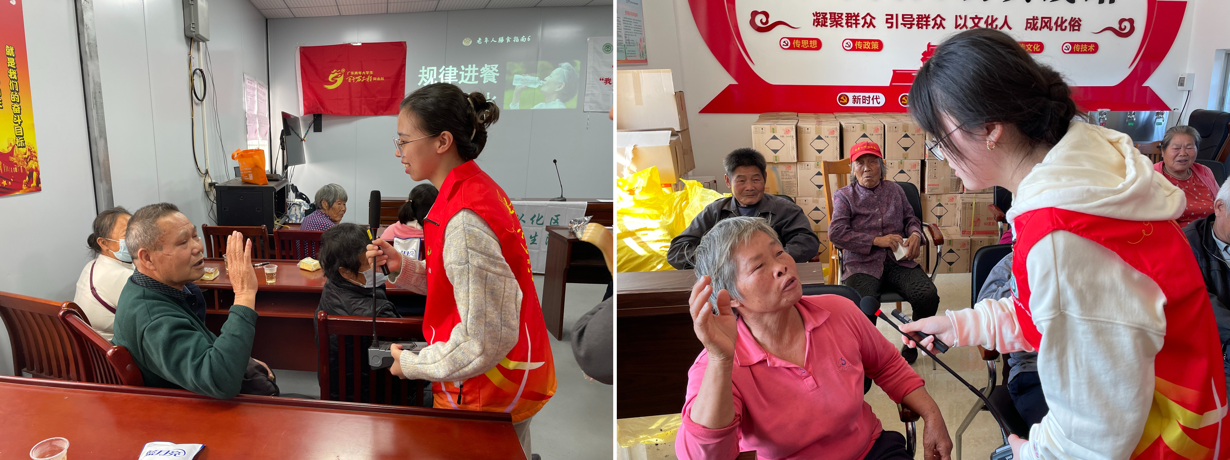 突击队成员钟艳灵同学表示:“因为是第一次进行老年人科普,所以存在许多问题,比如普通话和粤语的交流障碍、老年人听力下降等,但是经过团队的不断总结与实践,我们的科普得到了许多老年人的喜欢与肯定。另外,在这次活动中,我们接触到许多基层的医务人员和村委,他们坚守在各自的岗位上,默默地为群众服务,就像一束微光,平凡却伟大!是我们学习的榜样!”