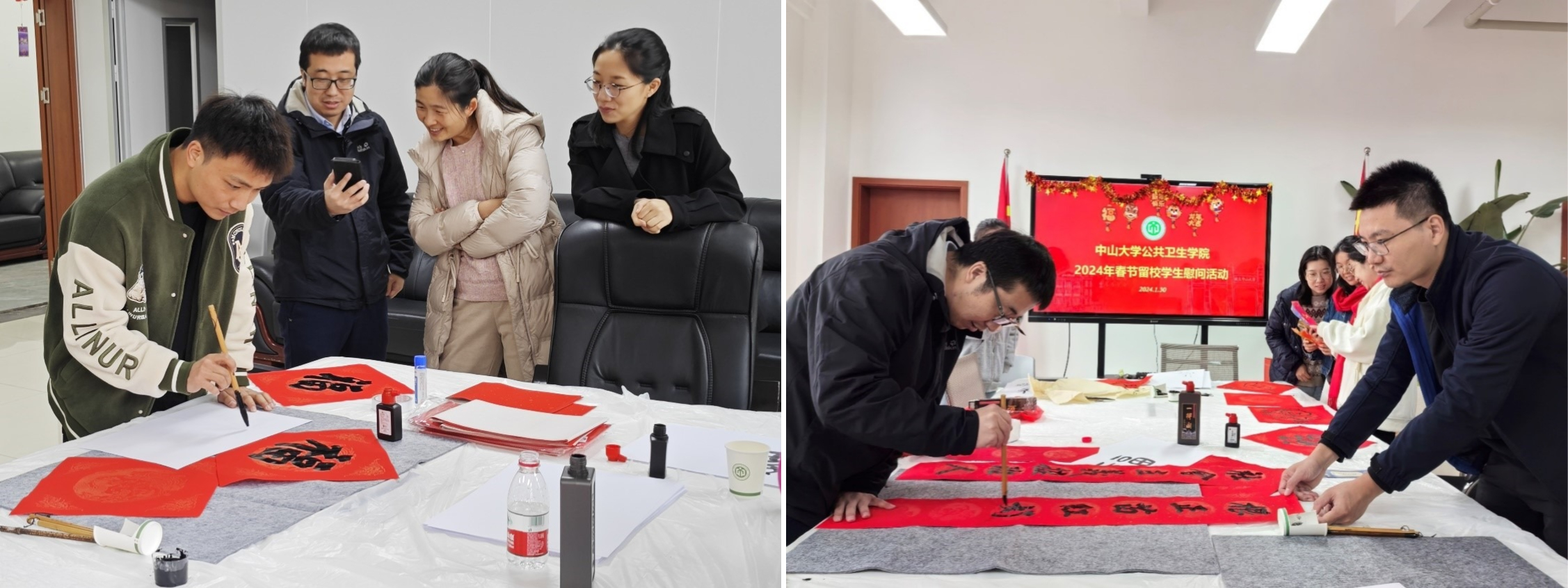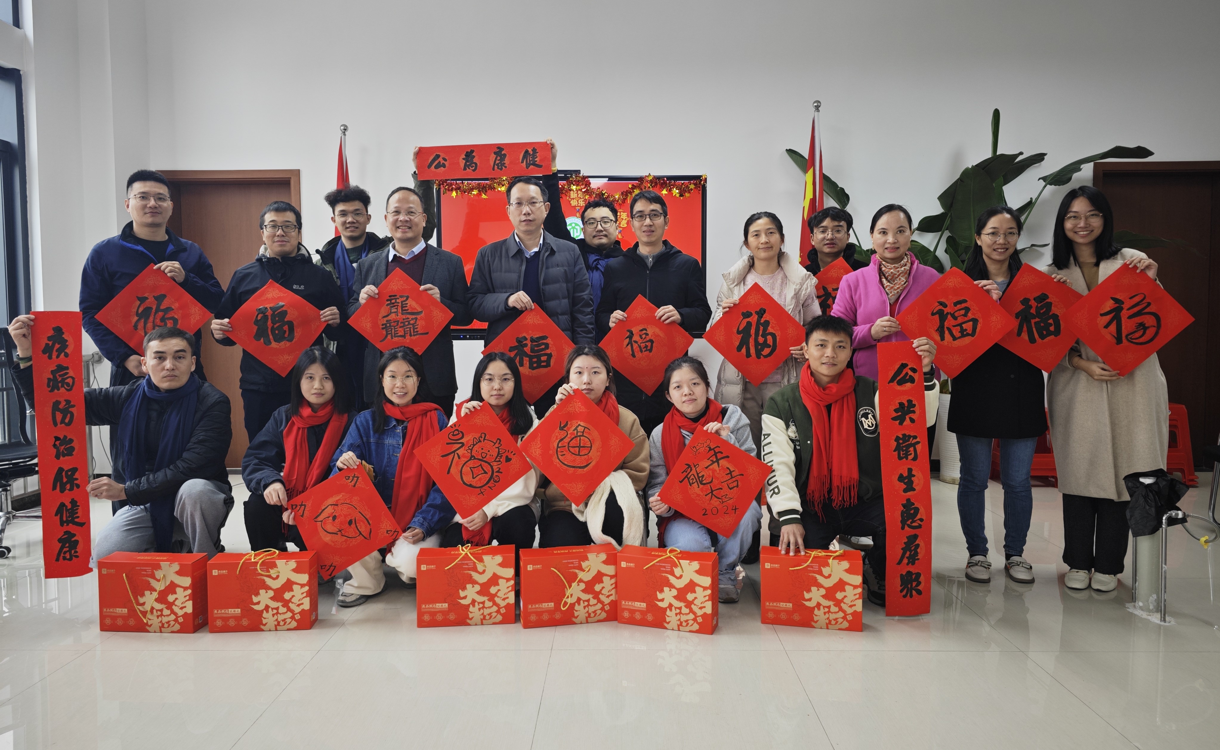 公共卫生学院院长夏敏、党委书记范瑞泉、党委副书记王燕芳、党政办主任周天蓉、团委书记陈霞、团委副书记蓝丹红、党政专职辅导员李永强,青年教师专职辅导员李菁华、张王剑和杜志成副教授,与留校学生代表共聚一堂、共话佳节,并特邀杨博逸副教授现场题联。