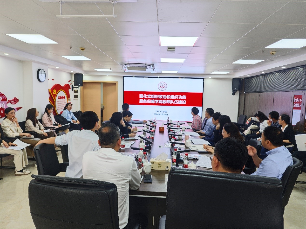 范瑞泉书记以《强化党组织政治功能和组织功能,服务保障学院教师队伍建设》为题作分享,指出高水平公共卫生学院建设核心在于人才,学校和学院高度重视教师队伍建设,要通过建立健全七大工作体系,强化党组织政治功能和组织功能,服务保障学院教师队伍建设。