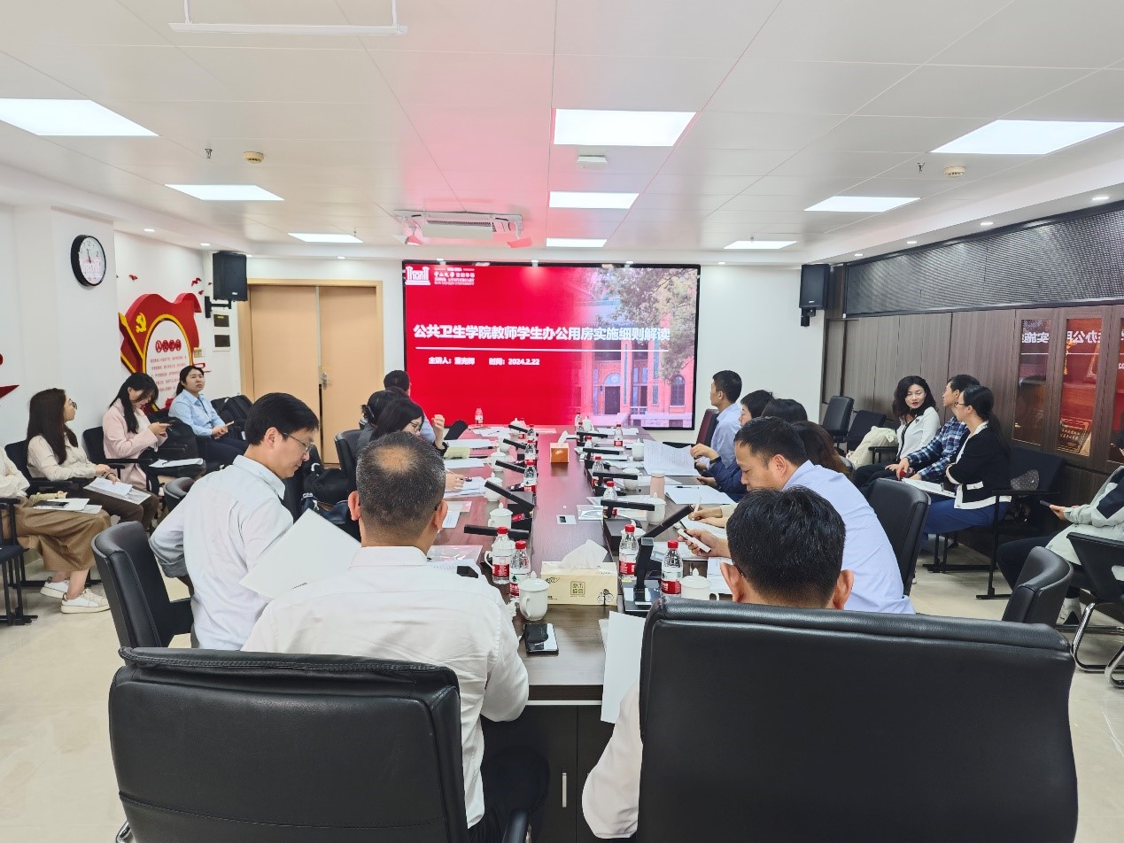 董光辉副院长介绍《公共卫生学院教师学生办公用房实施细则》,该制度填补了学院公共用房制度空白,以期提高房产使用效率,提升师生获得感和幸福感,助力学院高质量内涵式发展。