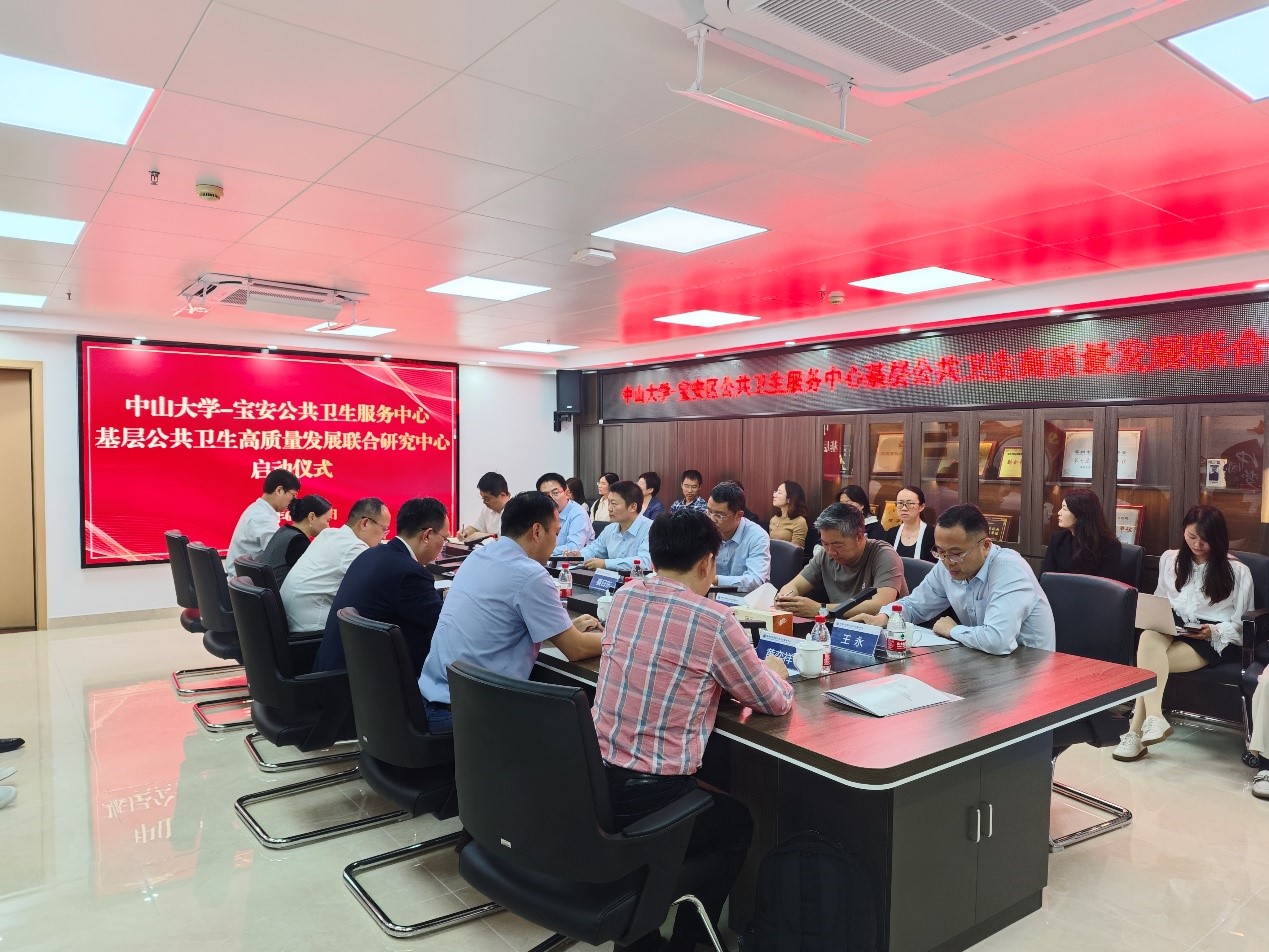 2月22日下午,yl88858永利集团宝安公共卫生服务中心基层公共卫生高质量发展联合会研究中心启动仪式成功举行,深圳市宝安区卫健局副局长蔡日东,宝安区公共卫生服务中心主任周小涛,党委书记、副主任王永,公共卫生学院院长夏敏、书记范瑞泉等出席仪式。