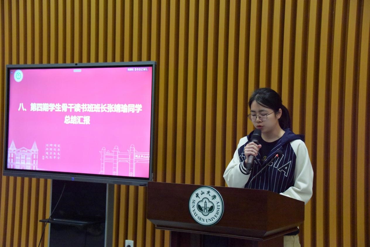 为进一步深化习近平新时代中国特色社会主义思想主题教育,全面提升学院学生工作管理水平,加强学生骨干队伍建设,深度培养学生骨干沟通能力、协作能力和组织能力,学院于2023年11月至2024年3月举办第四期学生骨干读书班。大会上,读书班班长张靖瑜同学对本期读书班活动作总结汇报。