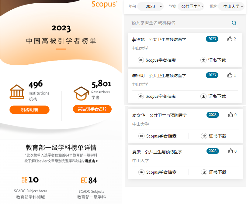 自2015年,爱思唯尔(Elsevier)与上海软科教育信息咨询有限公司联合发布“中国高被引学者年度榜单”。此榜单以全球权威的引文与索引数据库Scopus作为中国学者科研成果的统计来源,采用上海软科教育信息咨询有限公司开发的方法,识别各学科最具全球影响力的中国学者。该榜单至2024年已是第10次发布,并受到国内外众多媒体和学者高度关注。