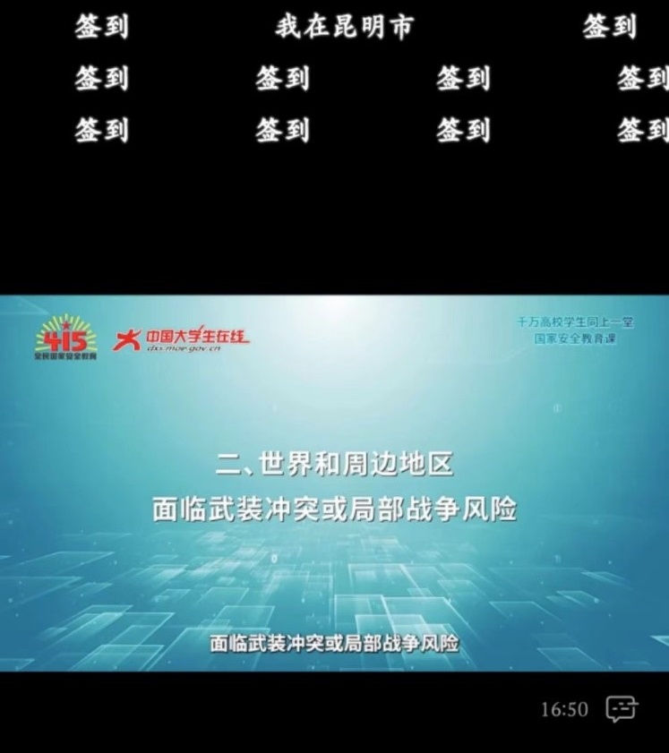 我院2020级1班、2022级2班和3班等多个团支部观看了“国开大讲堂·国家安全教育公开课”。本次公开课围绕总体国家安全观、军事安全、经济安全、科技安全、生态安全等方面内容深入浅出讲述,有助于青年全面认识国家安全,了解国家安全的全方位特征,认识到各类安全之间的内在联系和相互影响,从而提升青年的综合素质,激发青年在守护国家安全中的使命担当。