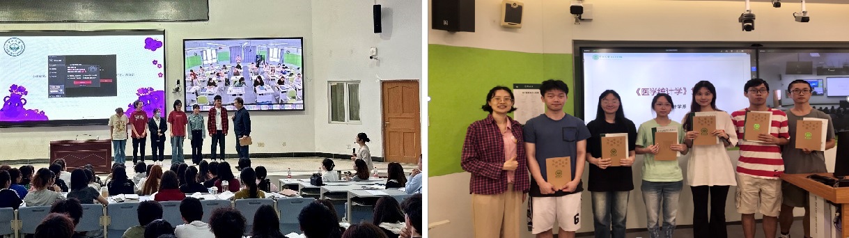 本次精心设计的复习课采用了翻转课堂的教学策略,旨在通过提高学生的主动参与度和批判性思维来优化学习效果。第一节课,学生们按小组进行了综合讨论题的展示,他们不仅对课前布置的任务有了深刻的理解,而且通过有针对性的互相提问和点评,展示了他们的交流和思辨能力。任课教师在此基础上进行评价,进一步引导学生深化思考。第二节课先采用问卷星进行课堂练习,确保每位学生都能积极参与到知识的实践中。任课教师再根据问卷星实时反馈的答题情况有针对性的进行讲评,解答了学生的疑惑,也巩固了课程的核心知识点。随后,按照教学大纲对课程内容进行了全面的回顾,以确保学生对所学知识有整体的掌握。课堂展示后设立了颁奖环节,表彰在讨论和提问环节表现优异的学生,并颁发慕课西行课程团队每位教师签名的笔记本,激发学生的卓越追求。