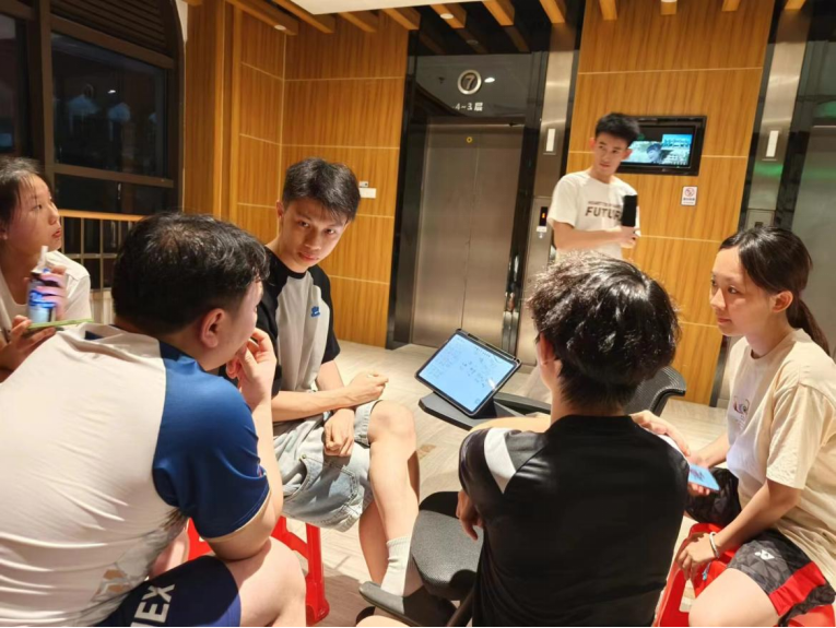 在6月1日至6月2日进行的总决赛中,我院羽毛球队队员们展现出了高昂的斗志和坚韧的毅力。在比赛开始前,队员们就聚集在一起,展开了激烈的战术讨论,细致分析了对手的比赛风格,相互比较自身的优势和弱点,并据此制定了针对性的战术策略。
