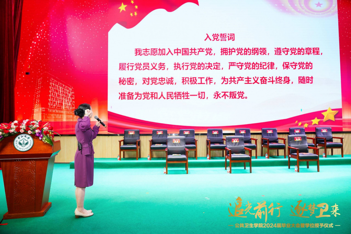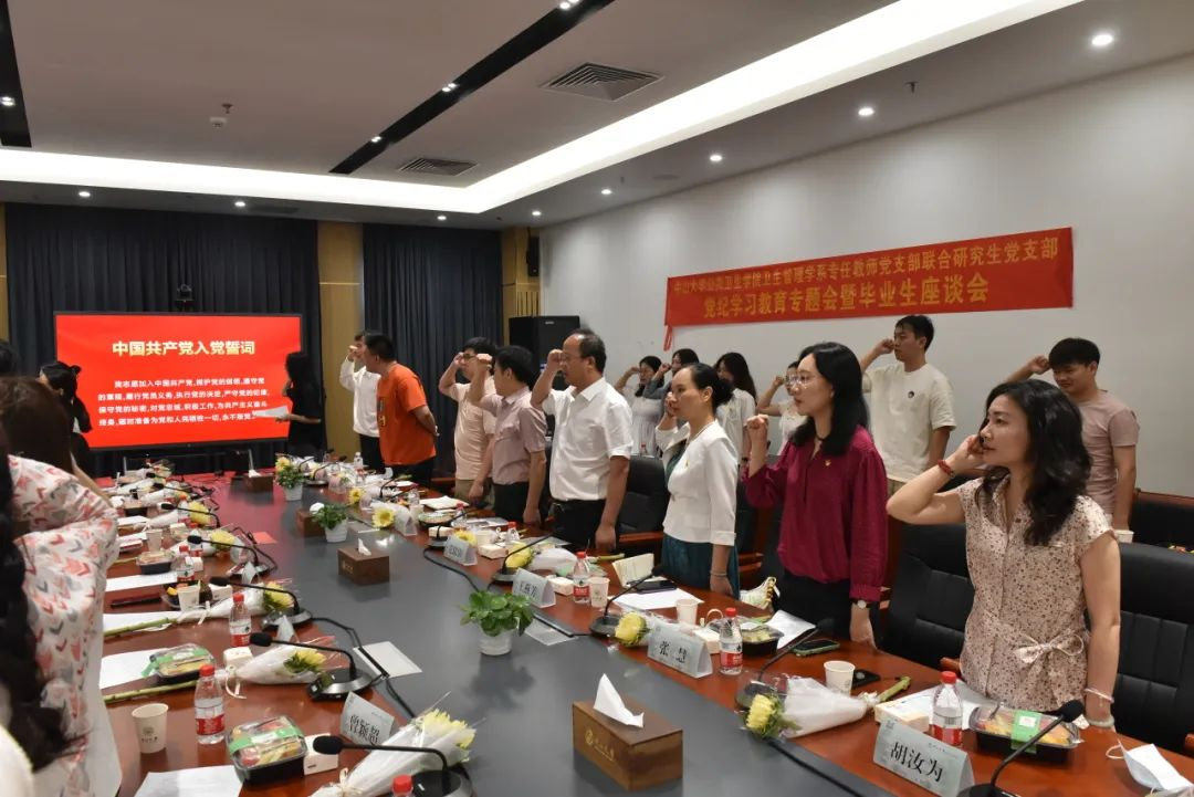 6月21日上午,王燕芳副书记在纪律教育后带领全体毕业生党员重温入党誓词,勉励公卫毕业生不忘初心,永葆廉洁本色。党员们右手握拳,声音洪亮,向党组织许下庄严的入党誓言。