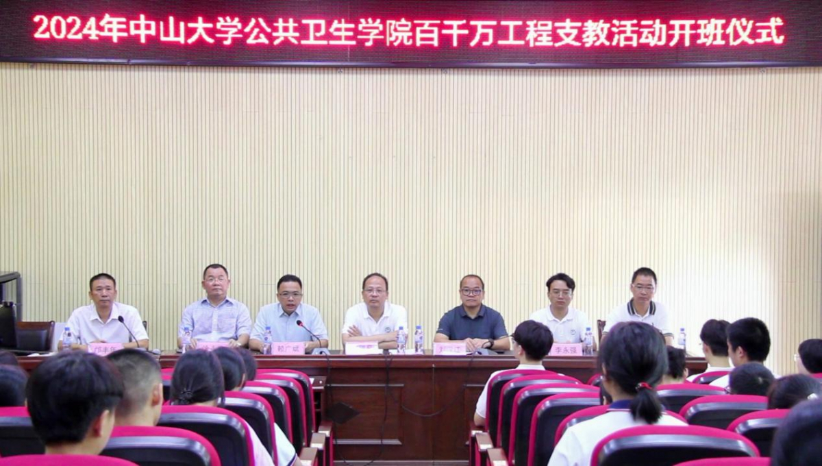 揭牌仪式结束后,突击队成员和当地学生一起参加了支教活动开班仪式。在会上,赖广斌校长对突击队成员的到来表示热烈欢迎,对公共卫生学院助力梅州教育发展表示诚挚感谢,并向同学们提出建议,期望突击队成员与同学们都能收获满满。