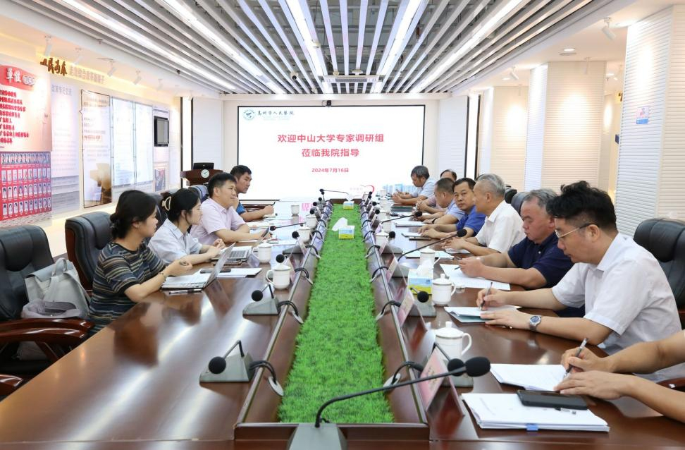7月16日上午,突击队成员兵分两路,黄奕祥教授带队前往高州市人民医院,在高州市人民医院车斯尧书记的介绍下,深入了解了高州市人民医院服务开展情况和医共体建设现状。随后,黄奕祥教授一行同高州市卫健局领导、高州市人民医院领导及中层干部开展座谈交流会。多方就高州医疗资源现况、医共体建设、人民医院发展、医保政策等开展深入交流。黄奕祥教授指出高州市在医疗发展理念、医疗发展战略、医疗资源配置和医共体建设上面临的挑战,并为高州市医疗发展出谋划策。