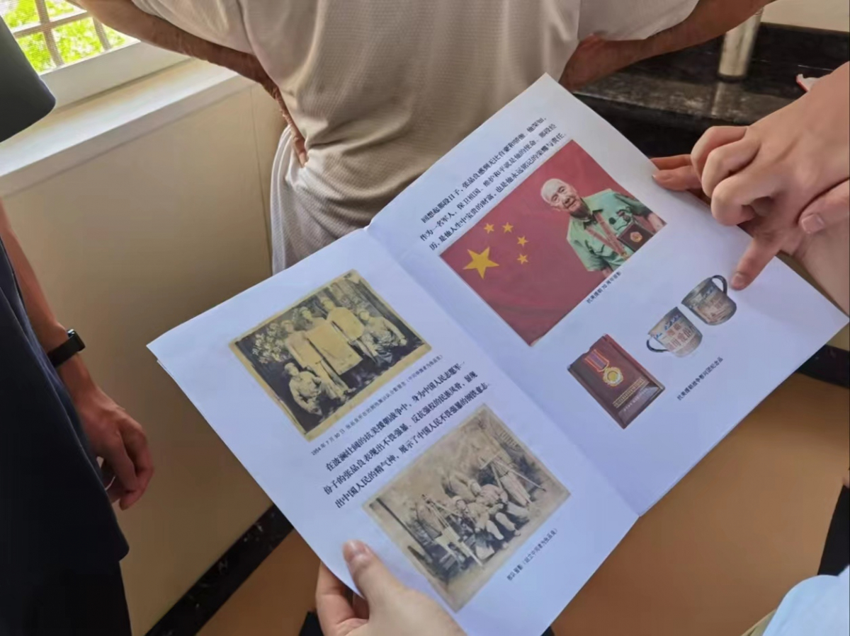 在这场交流中,一位特殊的老人走进了我们的视线——张品良老人是一位曾参加过抗美援朝战争的老兵,年逾耄耋,但眼神中依旧闪烁着坚毅,荣光焕发。老人缓缓讲述起自己18岁参军的英勇岁月,那些关于牺牲与奉献的故事,让在场的每一个人都为之动容;退伍复员后,他自学水利测绘,无怨无悔到社会建设需要的地方去。老人讲道:“我那个时候条件有限,只能自学读了专科,你们都是大学生,是高级知识分子,要好好学习,为国家社会做贡献”,看着老人满怀期待的目光,我们内心深受感动。更令人敬佩的是,老人接受当地媒体采访后,没有将那些承载着血与泪的荣誉奖章束之高阁,而是无私地捐赠给了恩平市博物馆,希望通过这种方式,让年青一代铭记历史,珍惜和平。