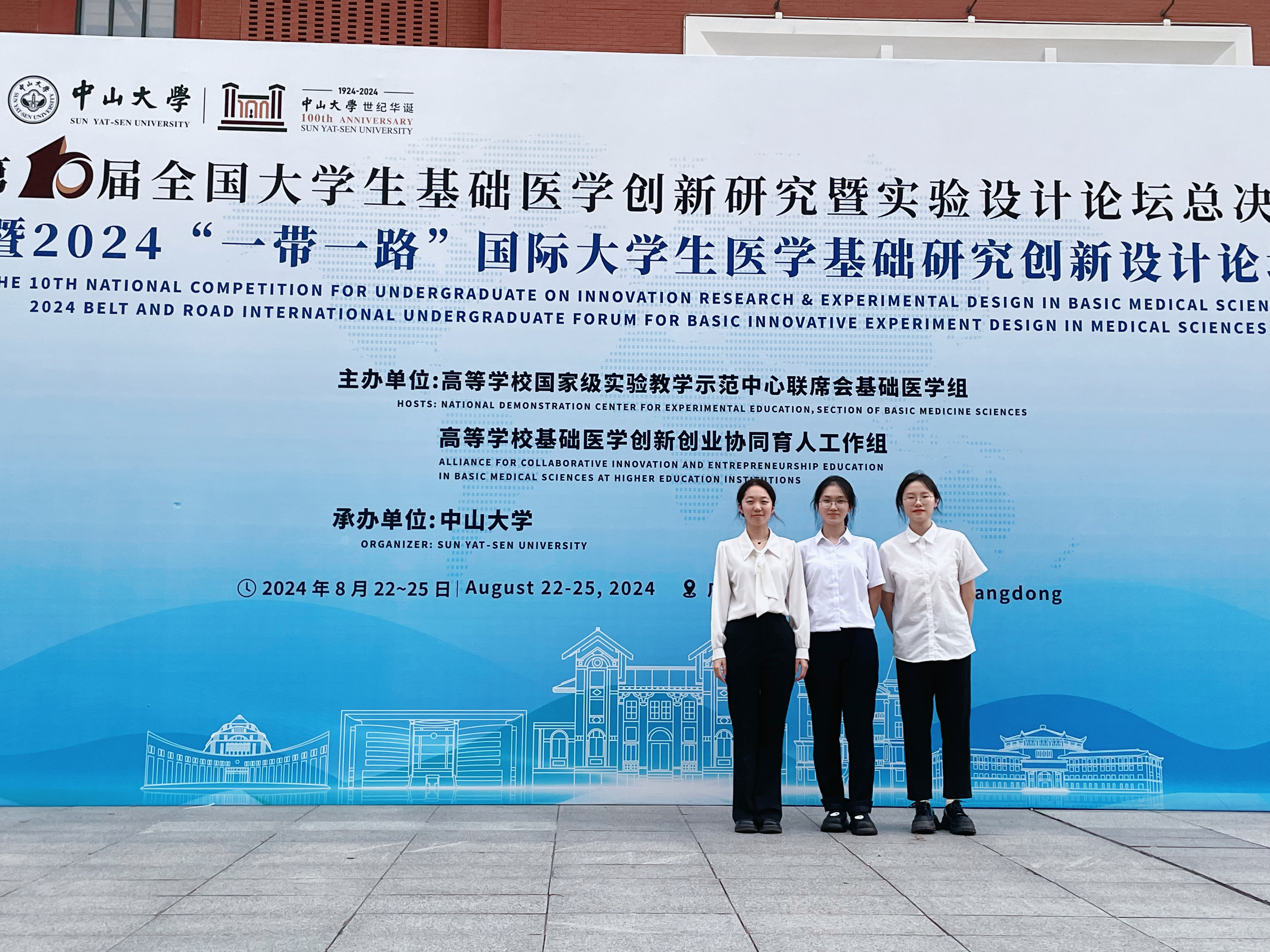 第十届全国大学生基础医学创新研究暨实验设计论坛全国总决赛于2024年8月22~25日开展,本届论坛我院有1支队伍参加决赛角逐,由流行病学系林华亮教授、张子龙副教授指导的卫怡廷、玉相约、黄诗睿团队在总决赛中斩获金奖,为百年校庆献礼!