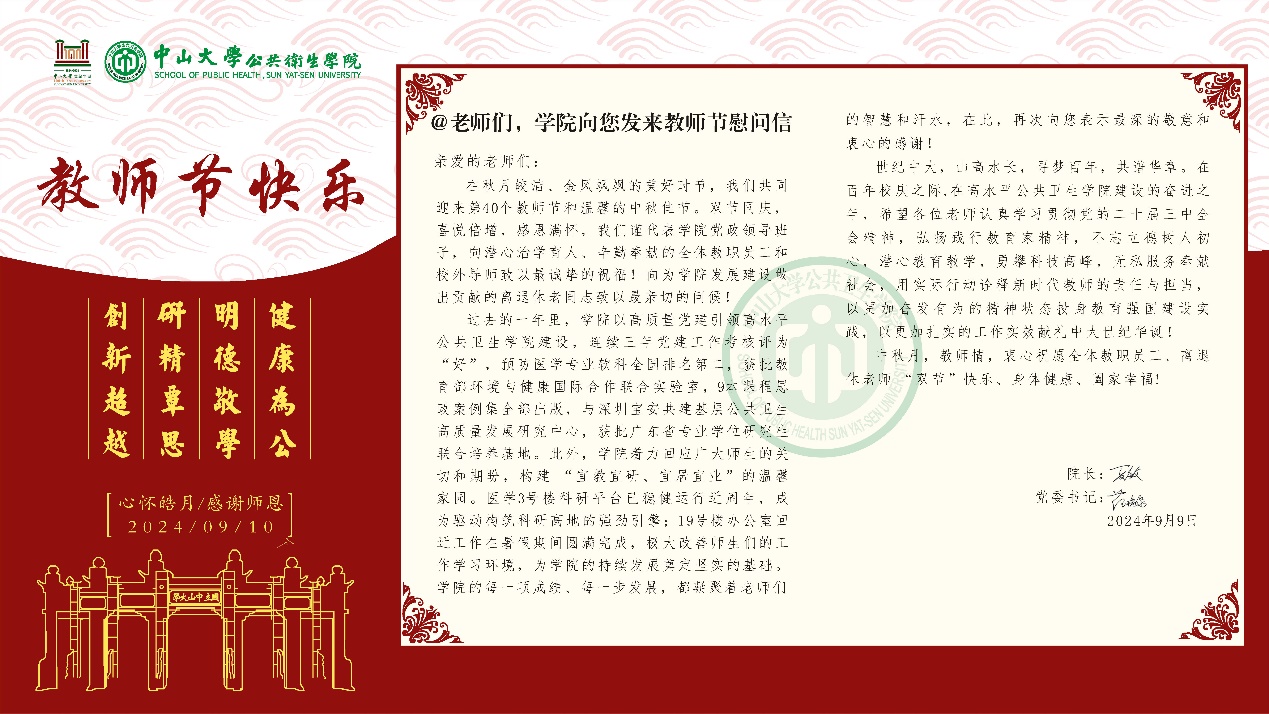 2024年公共卫生学院教师节慰问信