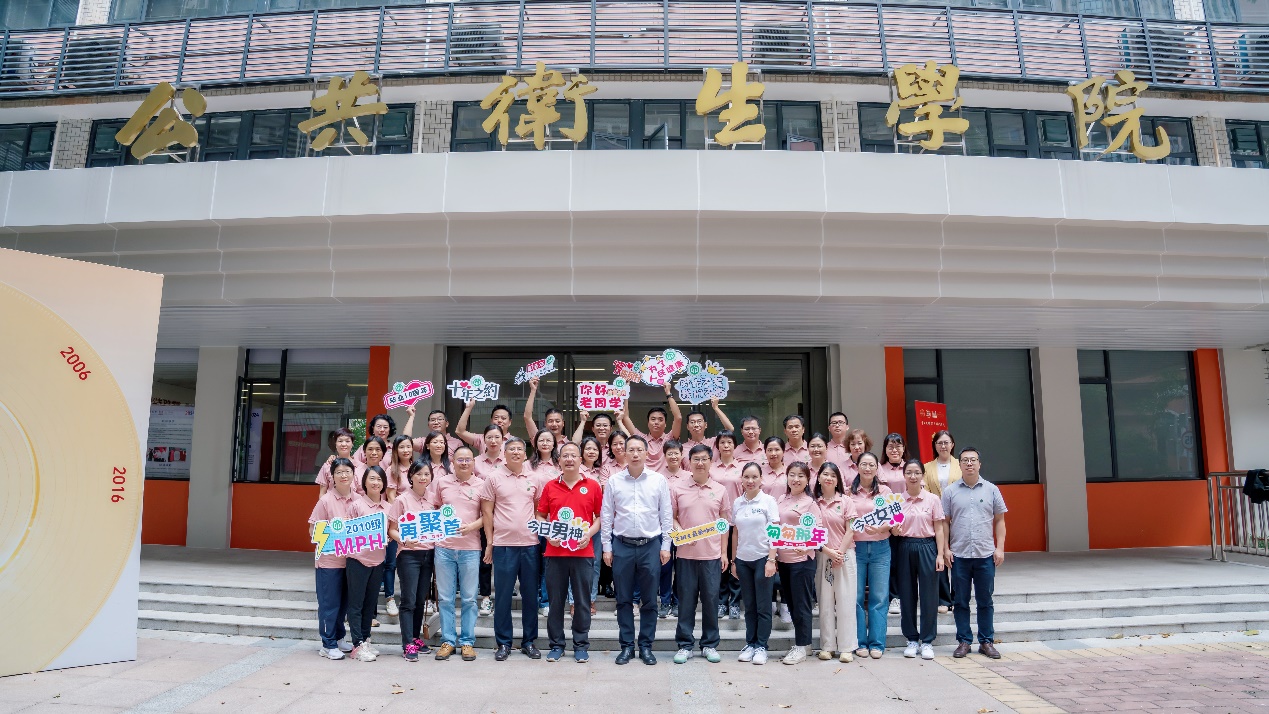 公共卫生学院2010级MPH校友毕业10周年师生交流活动在欢声笑语中画上圆满句号,学院领导、老师和校友们在学院楼前合影,留下珍贵回忆。