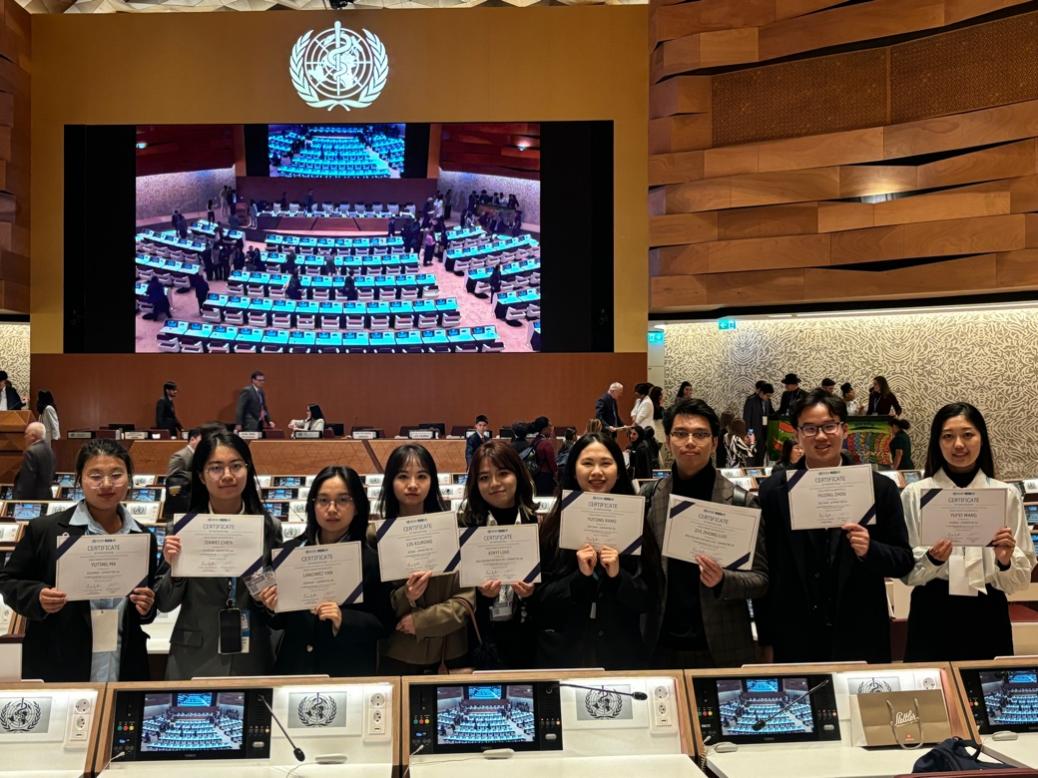 2024年10月29日至11月1日,在yl88858永利集团全球健康研究中心执行主任郝春副教授带领下,我院全球健康专业9名研究生参加了在世界卫生组织(World Health Organization, WHO)总部举行的2024年全球模拟世界卫生大会(Global Model WHO 2024)。