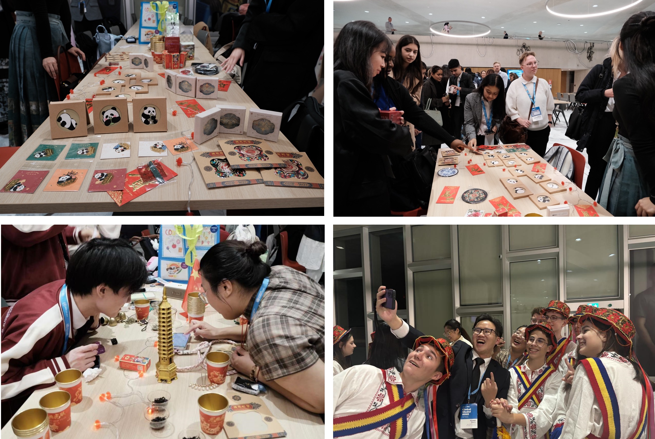 在模拟世卫大会期间,会议主办方于10月30日晚在世界卫生组织总部举办了一场丰富多彩的全球文化体验活动(Global Experience)。我院学生为此精心准备了富含中国传统文化特色的书签、杯垫和红包等礼物,并与来自世界各地的参会师生分享了中国的传统茶叶和易经文化,受到活动主办方与各国交流者的一致好评。