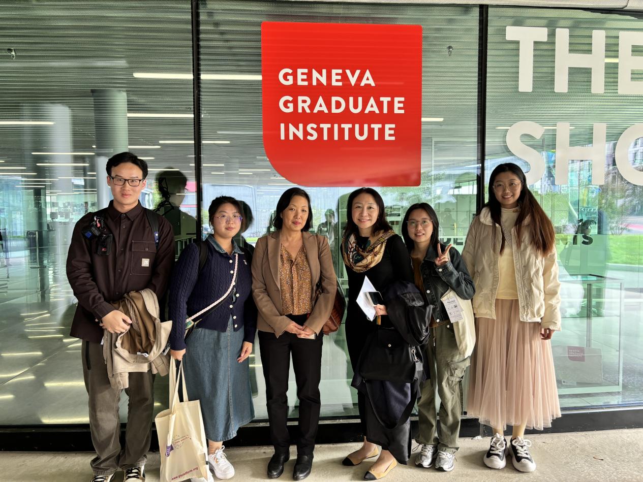 10月28日下午,交流团与北京大学、武汉大学赴瑞士交流团一同前往日内瓦高级国际关系与发展学院(Institut de hautes études internationales et du développement,IHEID)交流访问。IHEID是一所位于瑞士日内瓦的著名国际研究型大学。学院专注于国际关系学、国际法学、国际经济学、国际关系史和发展研究等领域的研究与教学,与全球性组织如联合国欧洲总部(UNOG)、世界卫生组织(WHO)等保持着紧密的合作关系。