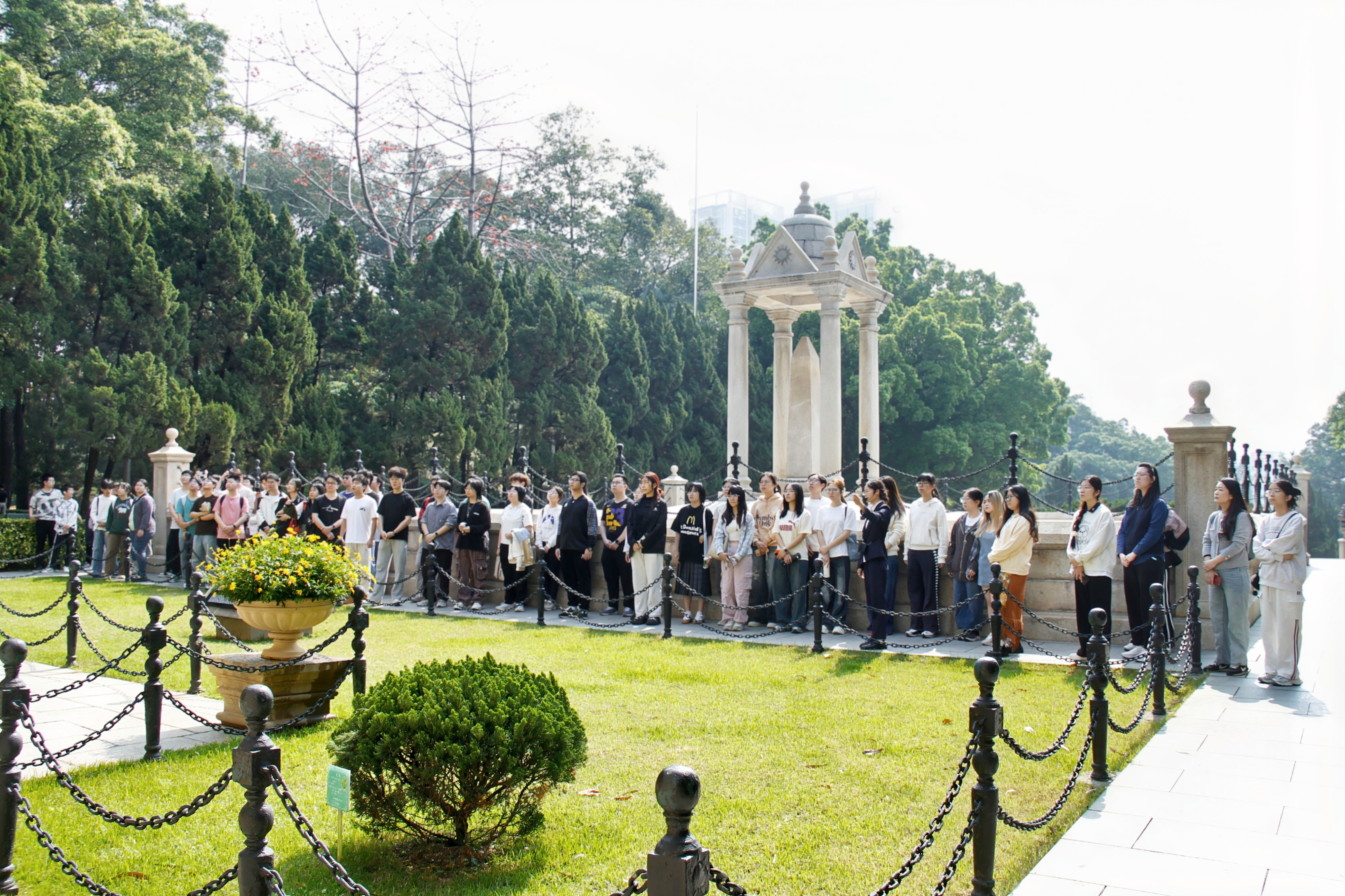 全体同学怀着崇敬之心,跟随讲解员重温黄花岗起义的历史,深入学习了七十二烈士的英勇事迹。同学们在烈士墓前肃立默哀,向长眠于黄花岗公园的八十六位革命先烈致以崇高敬意。