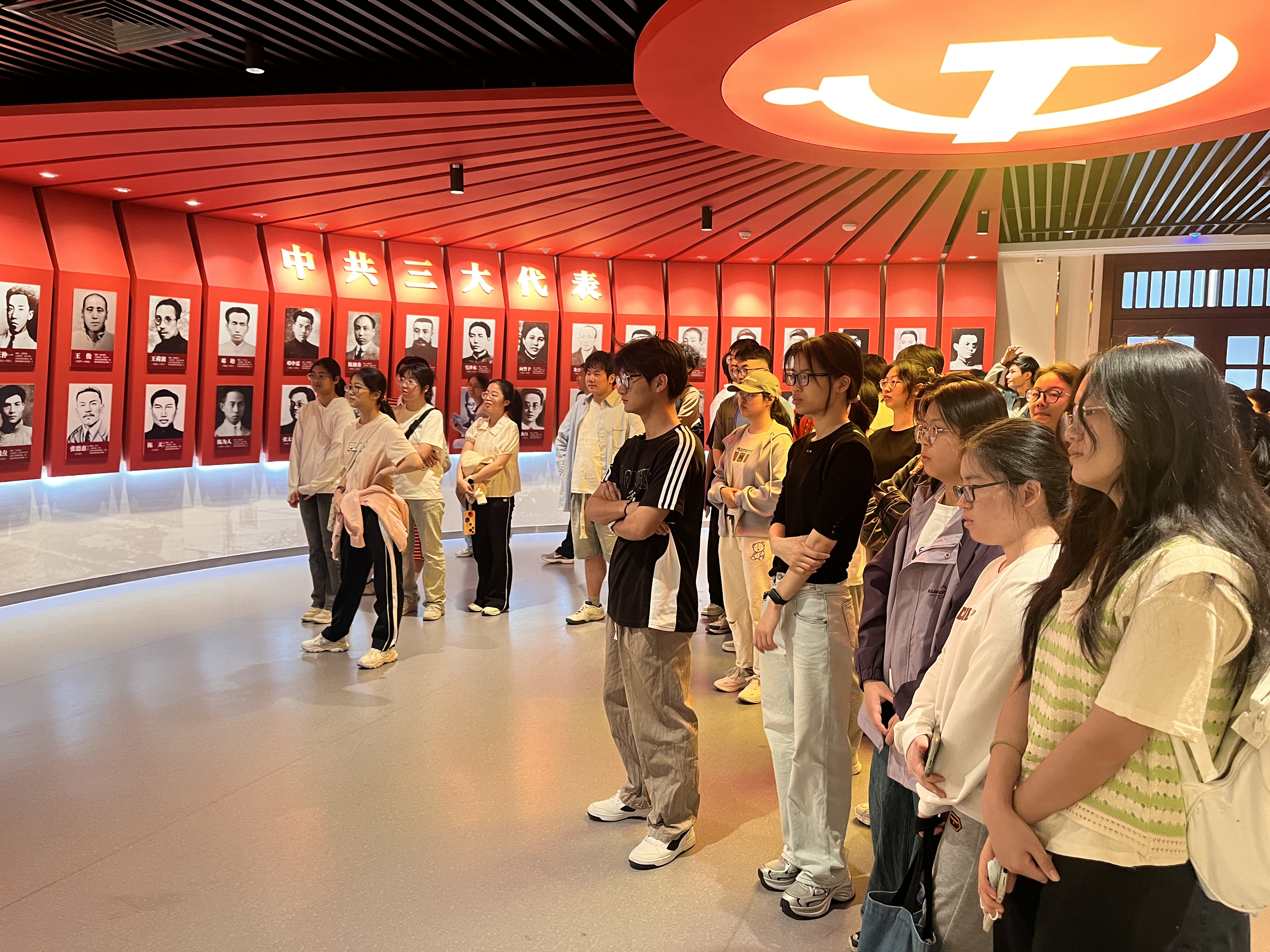 活动伊始,同学们怀着崇敬与期待的心情步入中共三大会址纪念馆,迫不及待地要去感受那个时代的革命激情和奋斗精神。在讲解员的带领下,同学们依次参观了各个展区。讲解员深入浅出的讲解,辅以馆内丰富的历史文物、翔实的文献资料以及逼真的场景复原,生动地再现了中共三大召开的历史背景、重要决策以及深远影响,让同学们仿佛穿越时空,亲身感受到了先辈们为实现民族独立和人民解放而不懈奋斗的坚定信念与伟大精神。同学们深刻体会到,这种为民族复兴而奋斗的革命精神,与雷锋同志无私奉献、服务人民的精神不谋而合。活动尾声,全体团员在团支部干部的带领下,齐声歌唱《学习雷锋好榜样》。同学们饱满的热情、嘹亮的嗓音,表达了新时代青年传承红色基因、弘扬雷锋精神的坚定决心!