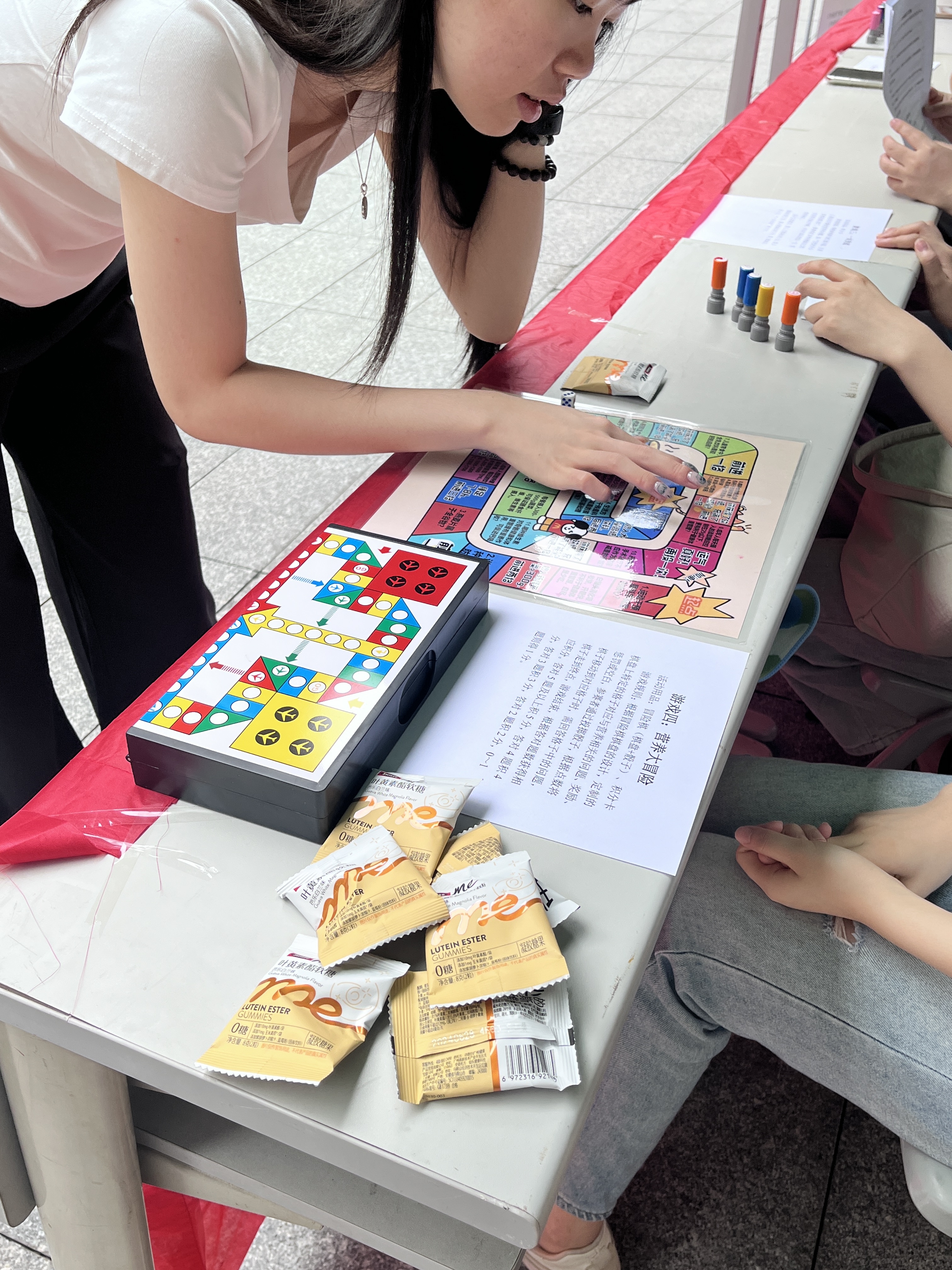 5月24日上午,由公共卫生学院学生会外联部主办的“动享食光”校园游园会于北校园学二食堂门口圆满举办成功。本次游园会活动主要设置了四个游戏摊位,如卡路里速排、营养大冒险等,将膳食营养搭配和运动锻炼等相关知识充分地融入了游戏中,得到了广大师生的认可和喜爱。游园会不仅通过轻松愉快的方式引导大家明确认识到平衡膳食营养对维持健康的重要性,也积极倡导大家培养良好的运动锻炼习惯并保持健康的生活方式。