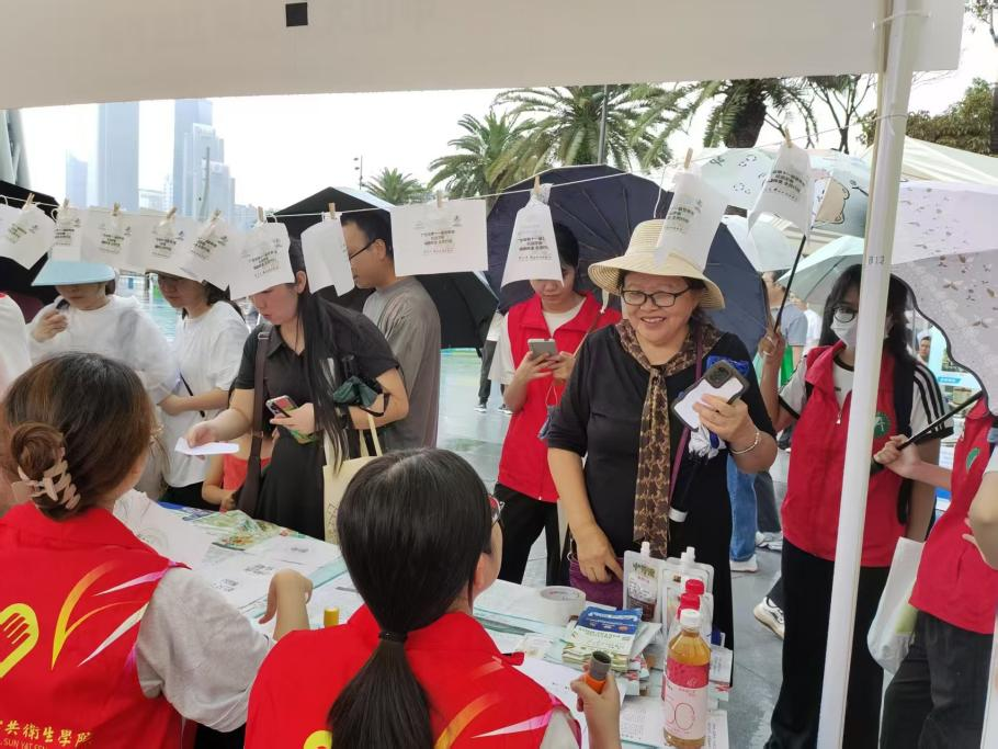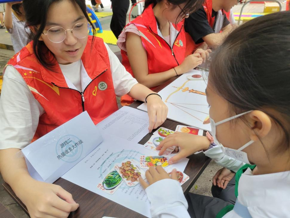 5月17日,广东省2025年全民营养周启动仪式在广州塔广场举行。启动仪式现场,我院营养与食品卫生学研究生党支部策划的“慧吃慧动”社区游园会吸引超1000名居民参与。猜灯谜、“膳食宝塔连连看”“热量列兵排排站”等趣味互动,让居民在游戏中学习饮食分类、热量差异等知识,领悟“吃动平衡”理念。