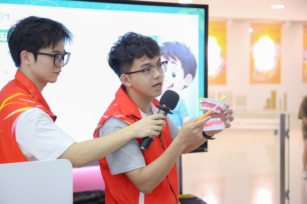 这个暑假,我以科普志愿者的身份走进社区和医院,带着"七步洗手法"和"巴氏刷牙法"的演示内容,与孩子们共同探索卫生习惯的奥秘。当小朋友踮着脚模仿我搓洗指尖的动作,和纠正自己刷牙角度时,我忽然明白:科普活动绝非单向的知识传输,而是需以通俗化表达激活公众对健康价值的自觉认同。健康意识的种子往往需要反复浇灌,而我们的每一次讲解,都可能成为改变的开始。用专业所学反哺社会,就是青春最美的践行。