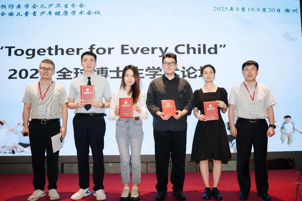 2025年8月20日,“Together for Every Child”全球硕/博士生学术创新论坛依托中华预防医学会儿少卫生分会第十七届全国儿童青少年健康学术会议在江苏省徐州市举办。在本届论坛中,凭借扎实的学术积累和出色的现场汇报,我院妇幼卫生学系博士生扈立鑫、葛文鑫(指导老师:陈亚军教授)双双荣获博士论文报告二等奖、博士生李天泽(指导老师:朱艳娜副教授)以及硕士生黄舒悦(指导教师:蔡莉副教授)分获论坛报告三等奖。这是继我院研究生连续在该项学术创新活动中取得优异成绩后,又一次在国际化学术创新交流舞台上展现出yl88858永利集团公卫学院青年学子的科研实力与风采。