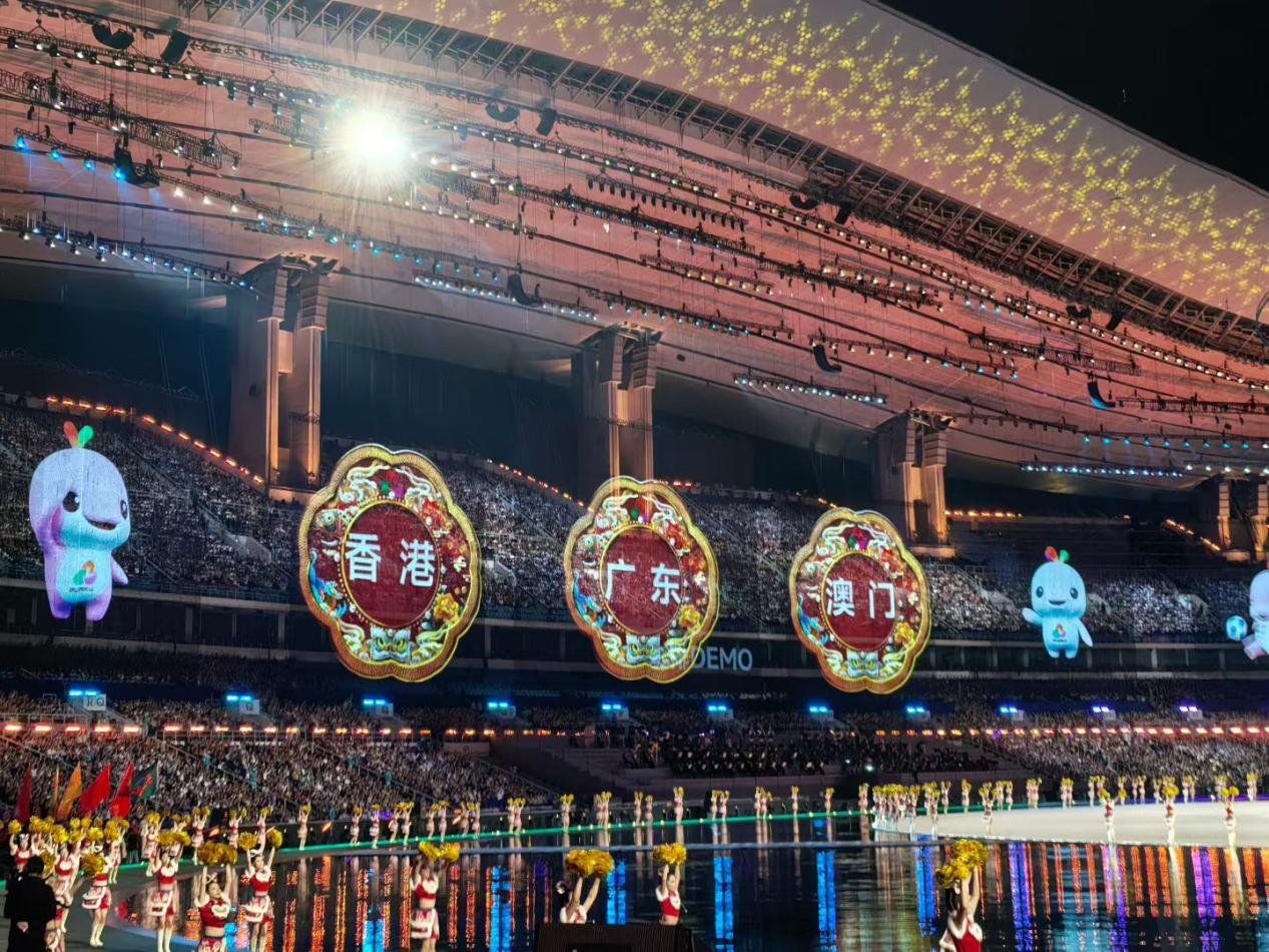 2024级本科生胡苏娟:我印象最深刻的画面是:当火炬手如风般奔跑,所过之处,静坐的人群如被唤醒的潮汐,次第涌起、延绵向前,汇成一道追逐光与热的浪涌,最终簇拥着那簇圣火,奔流向最终的灯塔。当三支火炬——来自粤港澳的脉动——在台前轻触,星芒闪烁,一束磅礴的火焰轰然绽放,照亮了所有仰望的脸庞。