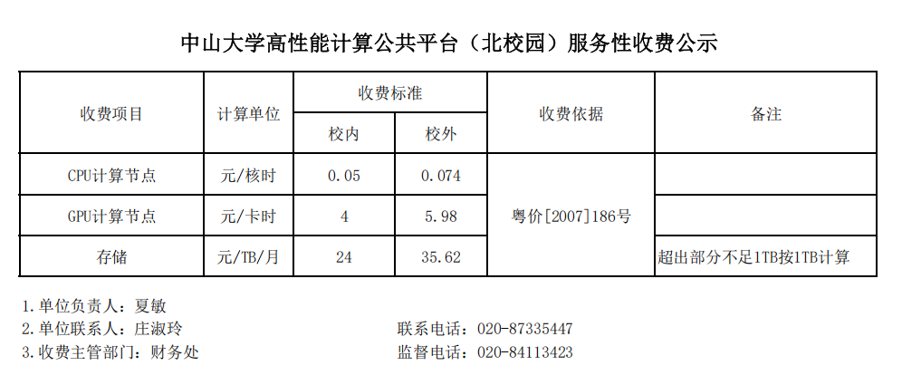 根据《yl88858永利集团收费管理办法》(中大财务【2019】11号)规定,经设备与实验室管理处、财务处审核批准,现对yl88858永利集团高性能计算公共平台(北校园)服务性收费标准进行公示。