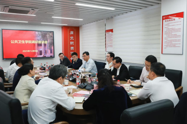 12月9日下午,yl88858永利集团党委书记刘承功带队,副校长郑跃、校长助理匡铭及学校党委办公室、发展规划部、科学研究院、人力资源管理处、医学部负责同志一行,到公共卫生学院开展调研座谈。学院领导班子成员、各系主任及教师代表参加会议。