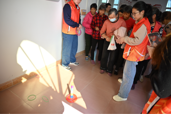 2026年1月19日上午,实践团面向老年居民开展“安‘康’晚晴”健康科普活动,聚焦“三高”(高血压、高血糖、高血脂)与骨质疏松。杨文琪同学使用亲切的方言,结合生活习惯讲清常见诱因,并从饮食、运动、定期监测与遵医嘱用药等方面给出可操作建议,同时通过互动澄清“血压正常可停药”等常见误区。活动以“健康套圈”等趣味环节提升参与度,让知识更易记、更易做。本次活动不仅有效提升了长者的自我保健能力,也让我院学子在实践中深化了对老年健康议题的理解,用专业与温度诠释了尊老敬老的情怀。