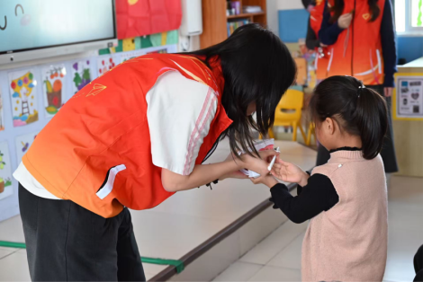 1月16日下午,实践团在云潭镇中心幼儿园开展“明眸皓齿小卫士养成计划”。活动分为“皓齿卫士”和“明眸守护”两个课堂:在护牙课堂中,毛维娅同学结合趣味故事与牙齿模型讲解龋齿成因,示范正确刷牙方法;在护眼课堂中,龙妍同学通过猜谜带领孩子认识眼睛结构,并用口诀讲解护眼要点。最后通过击鼓传花、快问快答等互动巩固知识点。本次活动是我院“预防为主”理念从小抓起的生动实践,在孩子们心中播下了健康习惯的种子,也让我院学子在互动教学中深化了对健康教育的理解。