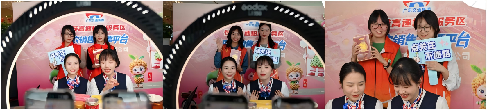 在柏桥直播基地,实践团成员以“直播助威团”的身份积极参与茂名特产推广直播。同学们在直播间手持宣传牌、齐声喊出口号,为直播现场注入了满满的活力。此次助播行动不仅切实支持了本土电商直播的现场效果,也展现了中大学子以实际行动融入乡村、助力地方产业发展的积极姿态。